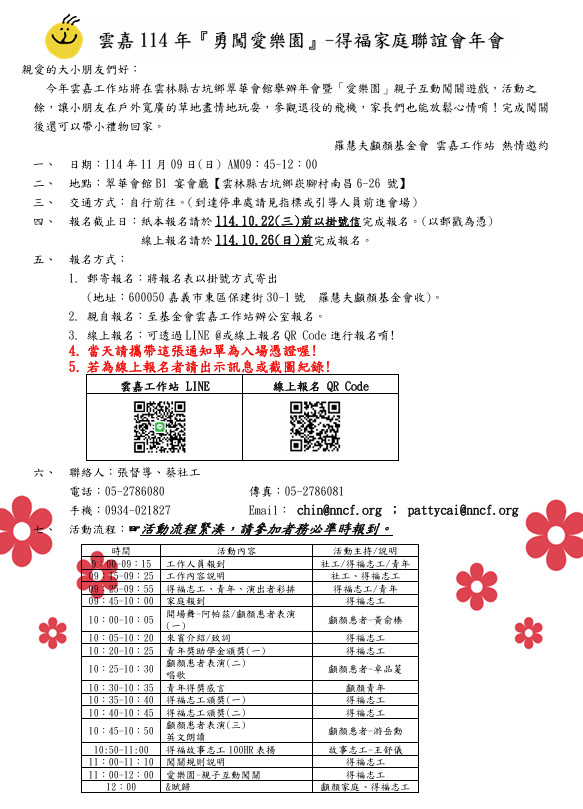 雲嘉114年『勇闖愛樂園』-得福家庭聯誼會年會