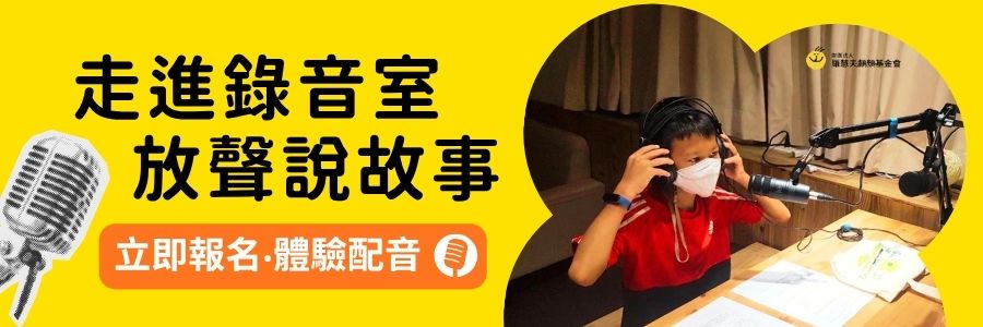 想體驗錄音室環境與實際配音流程,可以從「配音體驗」或「Podcast 錄製工作坊」開始;而正在尋找「配音課程入門」或「兒童配音體驗」的你,也很適合報名羅慧夫顱顏基金會舉辦的「小小配音員」徵選活動。