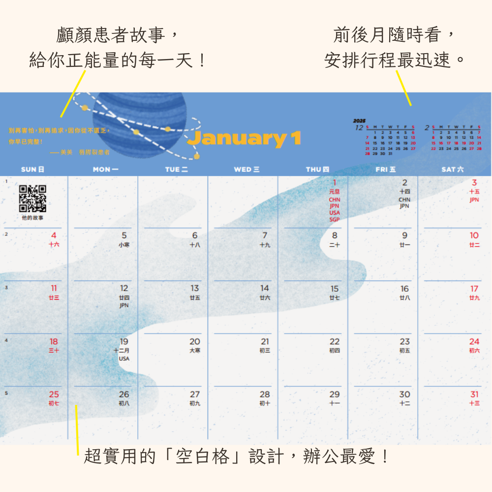 每一本桌曆的收益將用於支持羅慧夫顱顏基金會,幫助顱顏患者重拾笑容與自信。