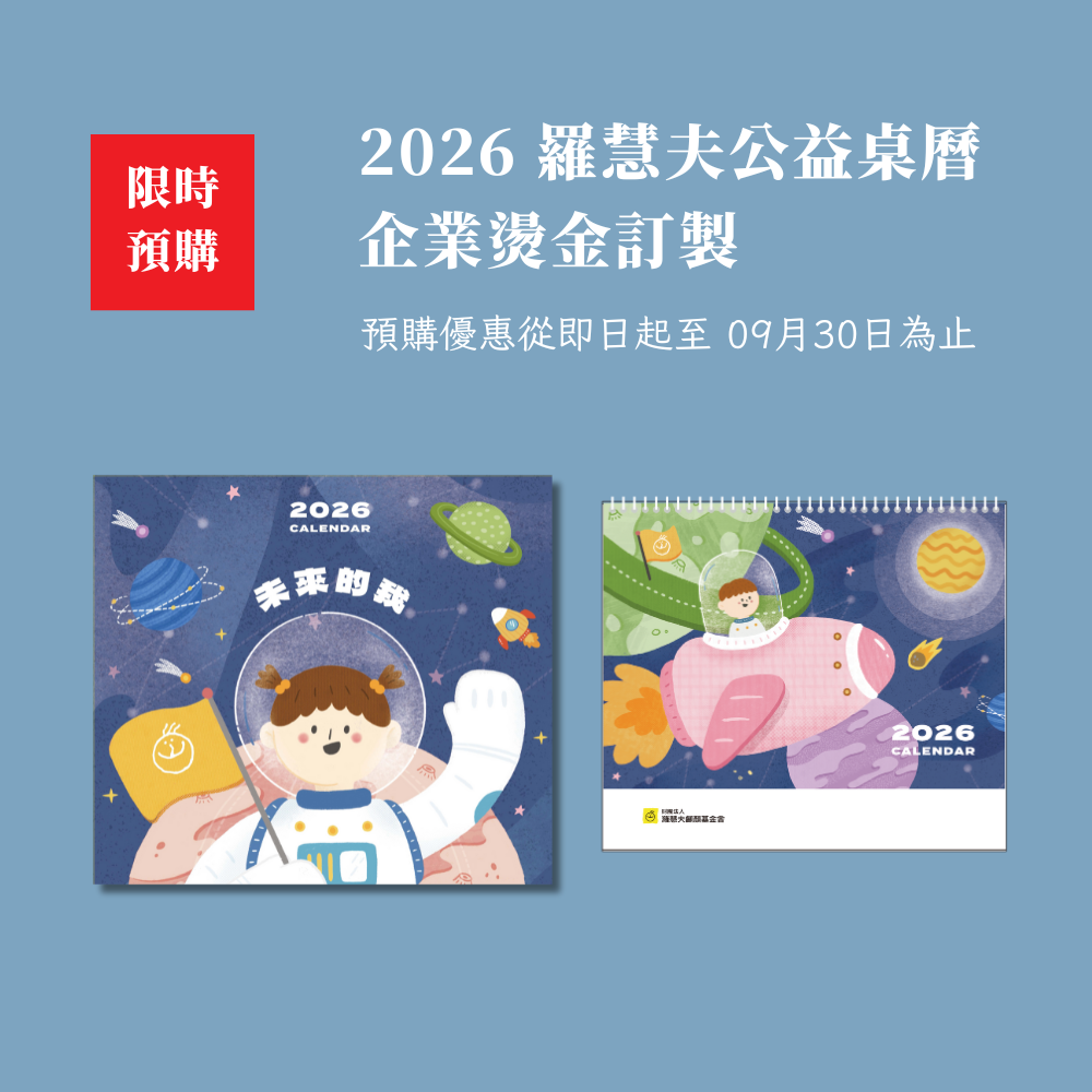 選擇【羅慧夫公益燙金桌曆】作為企業贈禮,實際支持公益行動。