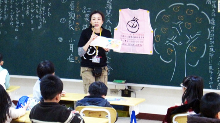 得福故事媽媽利用學校晨光時間到高雄市國小低年級各班巡迴說故事,以基金會自行出版、由小朋友創作得獎的「用愛彌補兒童繪本」為題材,在說故事過程中讓孩子思考「尊重不同生命、喜歡自己、喜歡不一樣朋友」的理念,也介紹先天性顱顏病症讓一般孩子了解到,顱顏孩子只是外觀與你有一點不同,其他都一樣。
