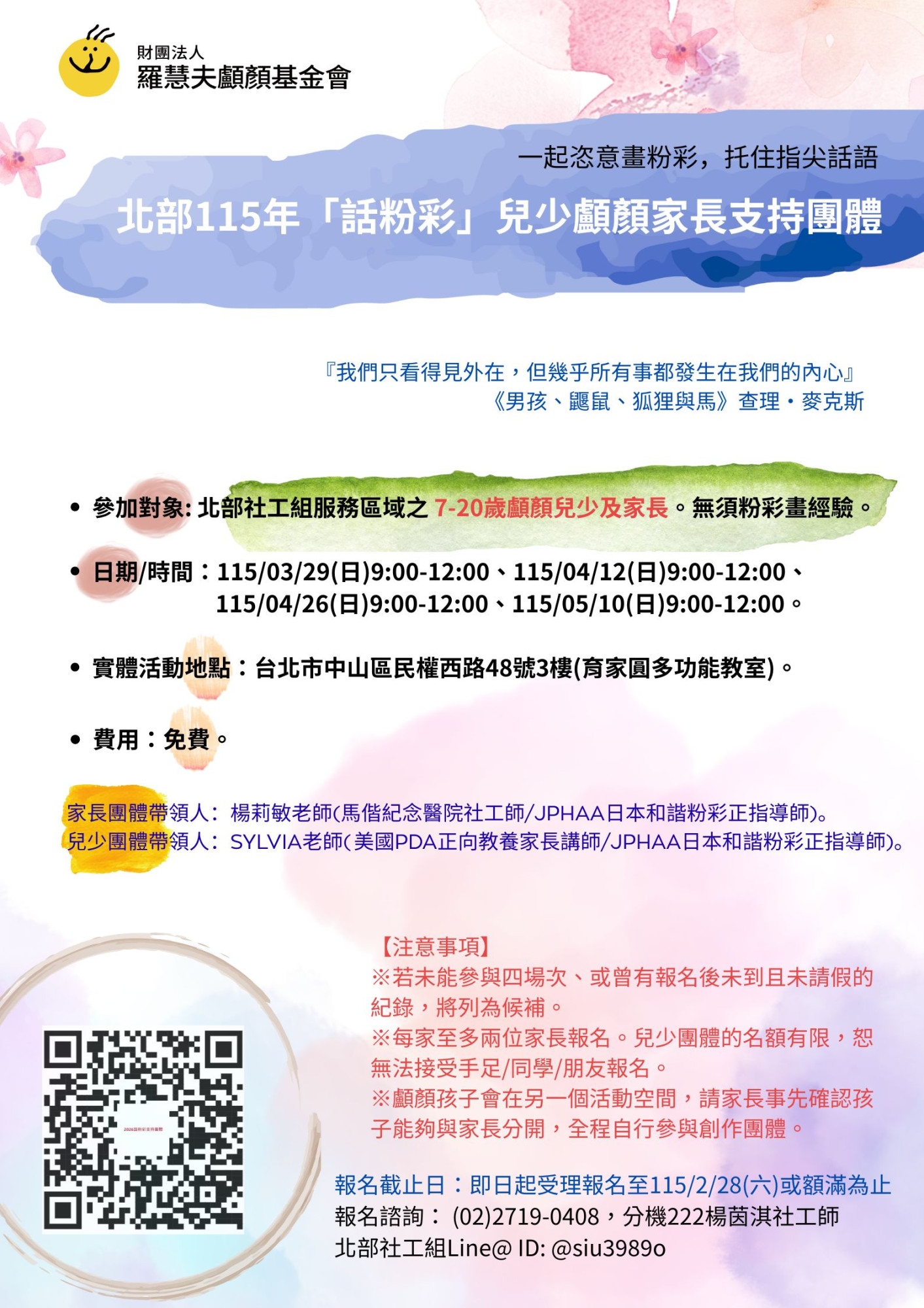 北部115年話粉彩兒少顱顏家長支持團體