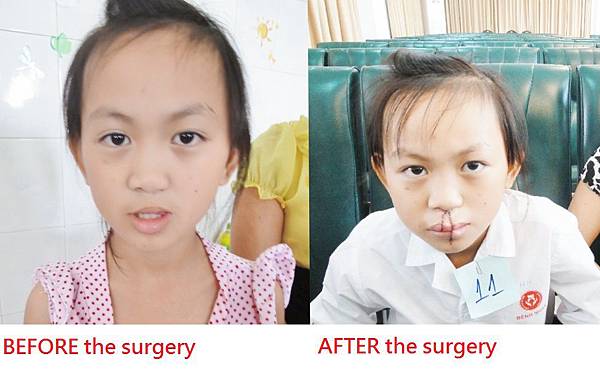 很感恩,「用愛彌補」義診團的到來,讓彤彤及父母的夢想實現成為可能。經過羅綸洲醫師(長庚醫院外科部部長,同時也是「用愛彌補」義診團團長)的評估,決定使用「交唇皮瓣手術」(Abbe Flaps Surgery)解決彤彤上唇緊縮的畸形現象。