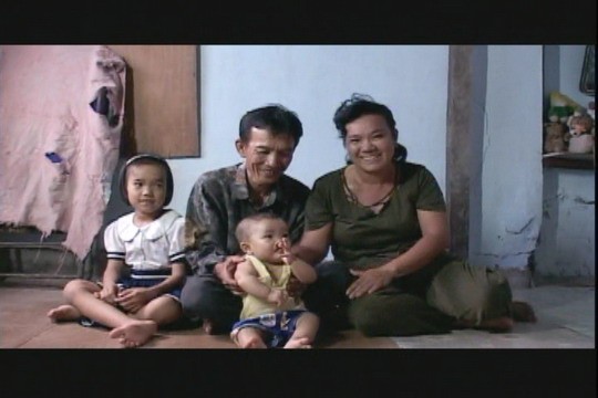 說是一個家,不如說他們的家是一個違章加蓋、家徒四壁的小閣樓,薄薄的木板簡單地架在鄰居家的屋頂上,三坪不到的空間,充當一家四口起居的全部範圍,牆壁一角堆著簡單的爐具,那是他們的廚房。另一角,堆著簡單的幾件棉被及衣物,而這是他們全部的家當,由於他們家是以薄木板簡單架在別人家的屋頂上,太多人站上去,木板就會往下凹陷,每走上一步,木板就會彈一下,我們因此開始擔心我們的到訪,可能就此毀壞了他們僅有的「家」