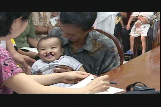 在會議室裡排隊看診的小文皇跟他的父親深深吸引著我們的目光。其實,小文皇唇顎裂的情形相當嚴重,大大的裂縫是他臉上最明顯的特徵,愛笑的文皇,笑起來臉上好像綻開一朵「M」型的笑容,相當可愛,而他的笑容也擄獲了義診團隊的心,我們期待可以還他一個「正常的笑容」~