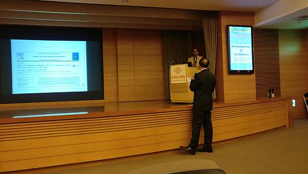 Dr Parit(圖後)在論壇上發表個案報告,由陳國鼎醫師(圖前)主持