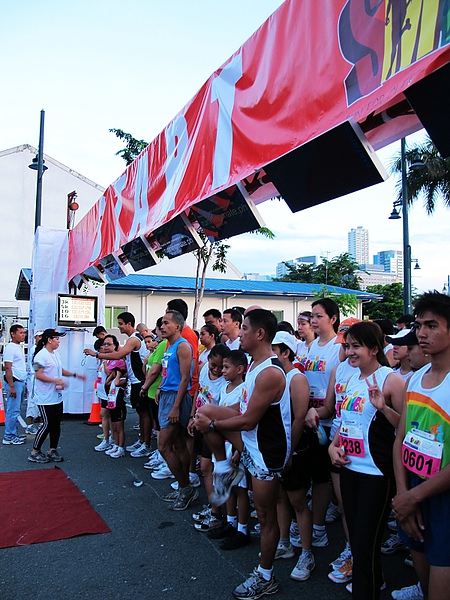 天稍稍亮,馬尼拉著名的金融商業區Bonifacio Global City林立的高樓旁廣場,就已經聚集了上千人,暖著身,等待鳴槍起跑的那一刻…