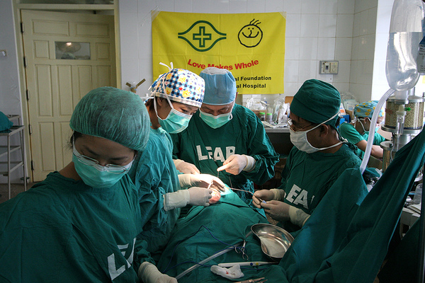 我們每年都會帶著許多有愛心的醫師護士叔叔阿姨們,飛到其他國家,幫許多家裡貧窮的唇顎裂小朋友們免費開刀。