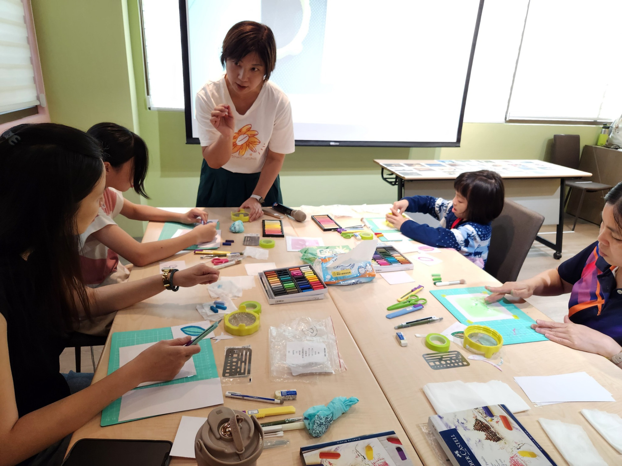 基金會於實務中經常發現,每當孩子進到小學,顱顏父母就會因孩子的同儕問題,勾起心中的自責愧疚,此時家庭組成若不能有效成為支持力量,主要照顧者會陷入「有苦不能說、有淚不敢流」的情緒壓力中。為此,基金會今年特別舉辦了四場北區「話粉彩家長支持團體」,期待透過和諧粉彩的藝術輔療方式,讓家長在安全信任的團體中,釋放心中的負能量並獲得正向的情感支持。活動以7到20歲兒少顱顏家庭家長為對象,總計四場共有7個家庭、23人次參加,除現場創作,也引導參與者利用事先準備的重要家庭合照,也將團體中的作品製成個人專屬筆記本,於未來生活中持續強化正向支持的提示。