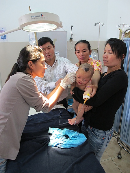 終於,母親破涕為笑,我感謝著金邊國家兒童醫院的種子醫護人員,如此認真用心,將「用愛彌補」醫療團及基金會「扶植當地種子,讓在地人幫助在地人」的精神延續,台灣的愛心在柬埔寨落地生根,越發茁壯。