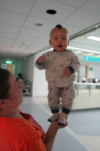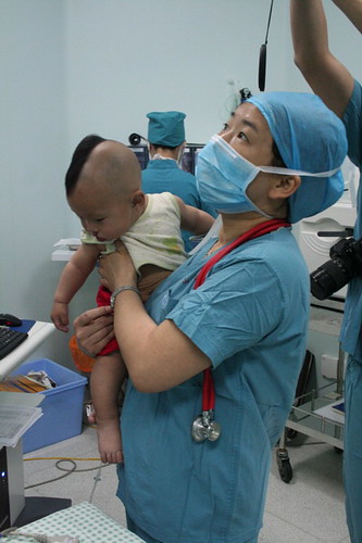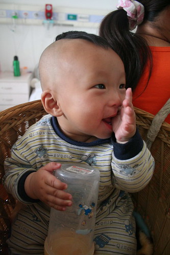 紅孩兒一直都處於精神極好的狀態,一般的患兒都是躺在床上等著開刀,他則是遊走各處,當然他還不會走,他是被大家抱過來搶過去的,人見人愛。