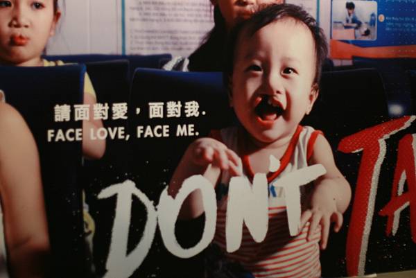 「Don’t Tag Me!不貼負面標籤」特展大海報。右一患童為手術前陳浩明。